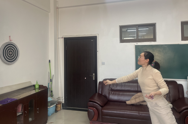 本次活动精心设置了掷飞镖、跳绳、夹弹子、踢毽子、筷子入瓶五大趣味项目,既兼顾运动的竞技性与趣味性,又注重参与的广泛性。平日里深耕讲台、伏案钻研的老师们纷纷变身赛场“达人”,现场瞬间成为欢乐的海洋。掷飞镖项目中,选手们屏息凝神、精准瞄准,一道道优美弧线勾勒出专注与从容;跳绳场上,轻盈的步伐伴随着欢快节奏,展现着教职工们蓬勃的生命力;夹弹子与筷子入瓶项目则考验着大家的耐心与细致,指尖的灵巧操作引来阵阵喝彩;踢毽子区域更是热闹非凡,彩色毽子在脚尖轻盈翻飞,时而高抛时而回旋,尽显功底与技巧。