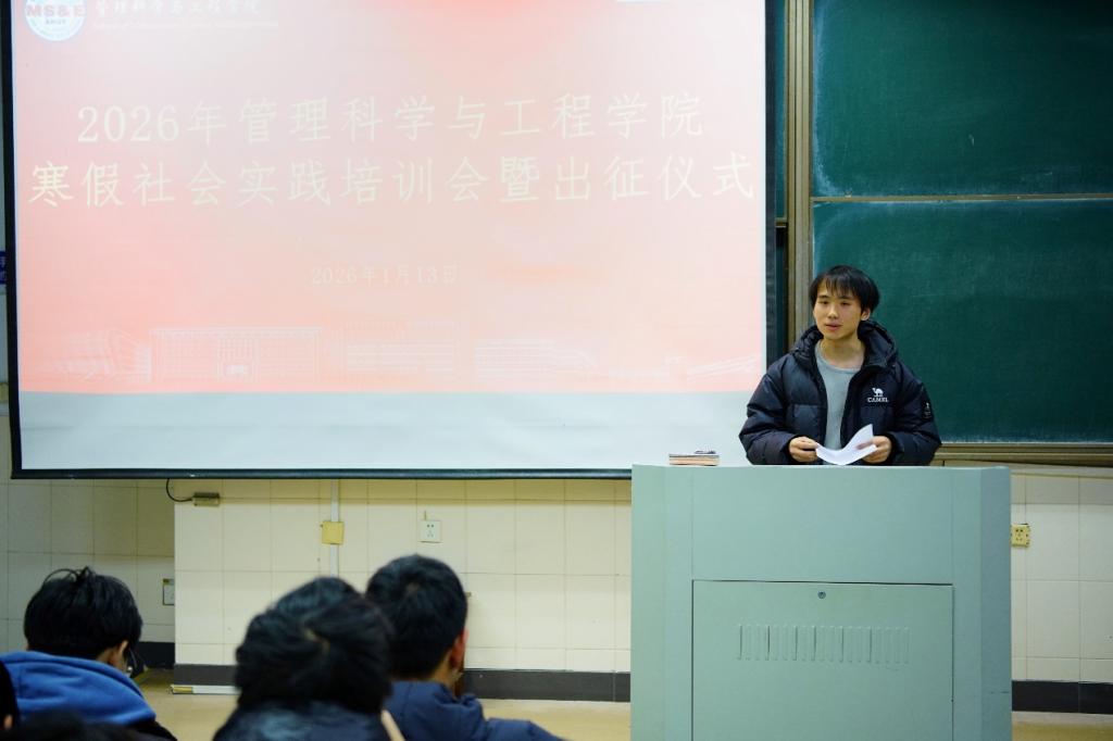于阶教205召开2026年大学生寒假社会实践培训会暨出征仪式。院团委书记赵玉婷,学院各实践队代表100余人参加本次活动。