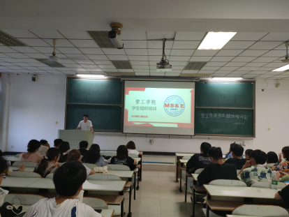 于教三南405召开团委学生会骨干组织培训会,会议由学生会负责人吴磊、江文静主持,学院学生会成员到场参加。