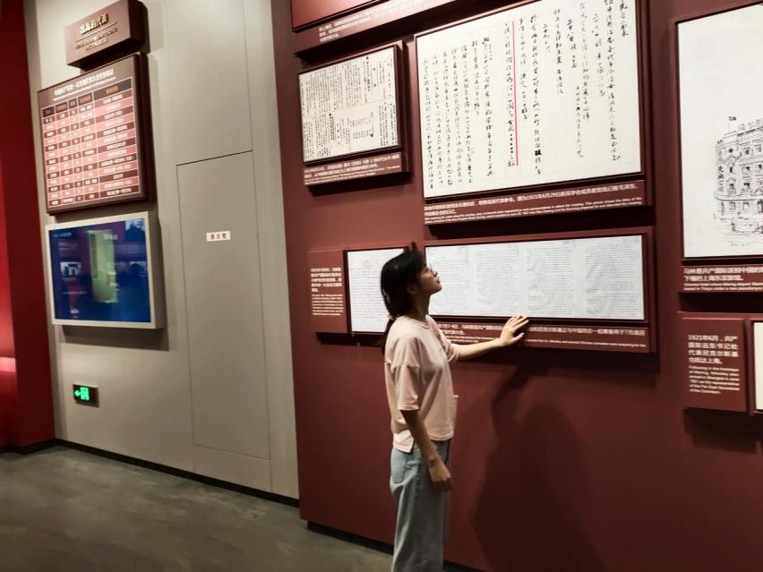 党史学习团队参观了中共一大会址和一大纪念馆。参观过程中,从会址内会议桌上的茶具摆设,到展厅中的《共产党宣言》中文首译本,百年前那段“觉醒年代”的历史正得到用心呈现。在讲解员的介绍下,实践队员先后参观了“历史选择、伟大开端”、“民众觉醒、主义抉择”、“开天辟地、日出东方”、“砥砺前行、光辉历程”等专题展厅。走进纪念馆,回顾历史,铭记奋斗历程;走出纪念馆,展望未来,勇担时代使命。通过此次实践学习,实践队员重温了中共建党初心,更加激发了砥砺前行、开拓奋进的激情斗志。从党的百年伟大奋斗历程中汲取前进的智慧和力量,答好新时代的新答卷。
