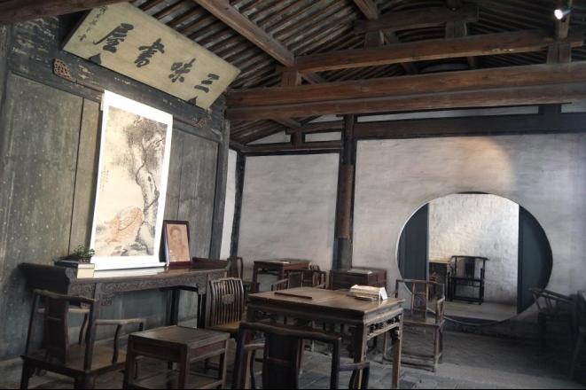从“绿林书屋”出来,一直往南走,走过一座石板桥,从一扇黑漆竹丝门进去,实践队员们来到了鲁迅少年时代读书的地方——“三味书屋”。首先映入眼帘的是一个弄堂,一张桌子,一个写着“三味书屋”的牌匾。一位老人向队员们介绍了鲁迅的生平故事。根据他的讲述,鲁迅12岁开始到“三味书屋”读书,在他的眼里,“三味书屋”是一个完全不同的世界,充满谐趣,5年多的学习生涯,使他受益匪浅,积累了丰富的文化知识,为日后从事文学创作打下了非常坚实的基矗,对五四运动后的中国文化也产生了深刻的影响。