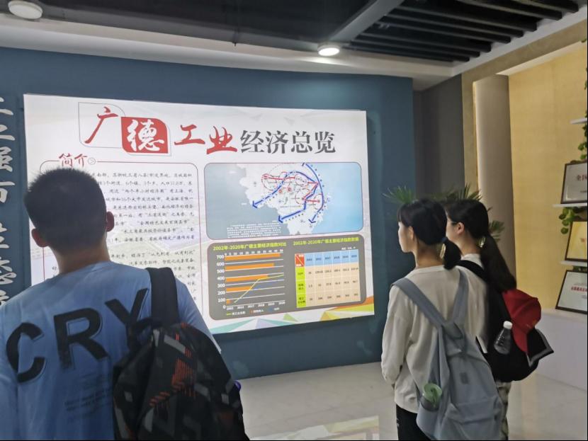图为实践队员参观广德工业经济总览展板。
